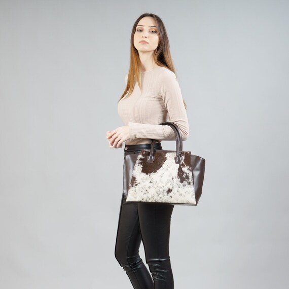 White And Brown Real Calf Leather Purse With Calf Hair Etsy Uk